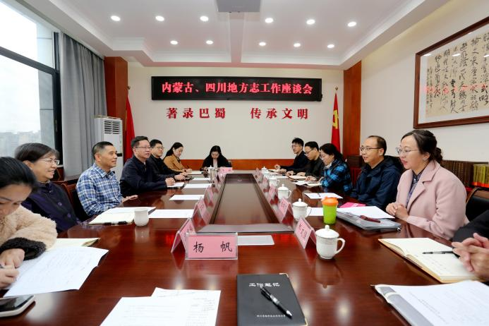 2025年12月9日,中共内蒙古自治区委党史和地方志研究室副主任陈鹏一行到四川省地方志工作办公室调研座谈。四川省地方志工作办公室党组书记、主任陈建春,党组成员、副主任刘自强,成都市地方志工作办公室党组成员、副主任林正出席座谈会,四川省地方志工作办公室一级巡视员江红英主持座谈会。中共内蒙古自治区委党史和地方志研究室年鉴处相关人员,四川省志办市县志工作处、四川年鉴社、成都方志馆(成都年鉴社)相关人员参加座谈。
