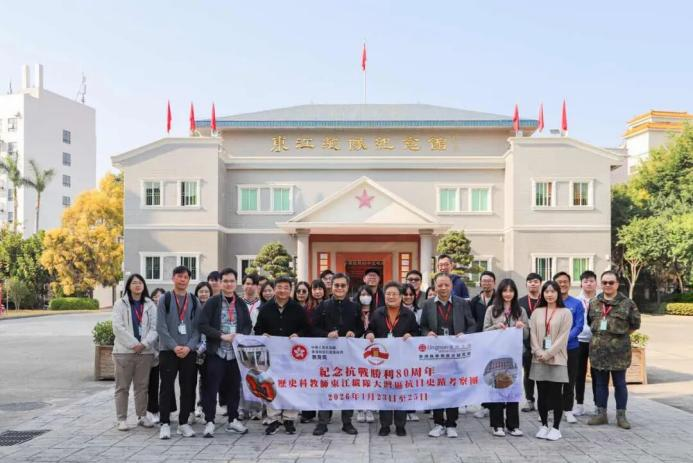 2026年1月23—25日,由22名香港中小学历史教师组成的“纪念抗战胜利80周年历史科教师东江纵队大湾区抗日史迹考察团”先后赴东莞、惠州、深圳考察。其中,24—25日在深圳考察,先后参观了深圳坪山东江纵队纪念馆、曾生故居、土洋村东江纵队司令部旧址、东纵北撤纪念亭及沙鱼涌、中国文化名人大营救纪念馆(白石龙)等5处历史文化场所。考察团由香港地方志中心总编辑、香港岭南大学协理副校长刘智鹏带队。活动由香港教育局委托香港岭南大学承办,深圳市人民政府地方志办公室协办。