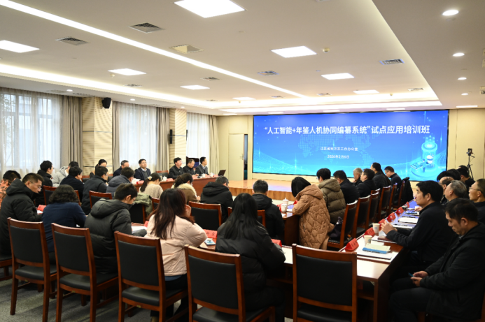 2026年2月6日,江苏省地方志工作办公室在南京举办“人工智能+年鉴人机协同编纂系统”(以下简称系统)试点应用培训班。江苏省地方志工作办公室党组书记、主任杨中华出席培训班并讲话,副主任、党组成员刘立军主持培训。