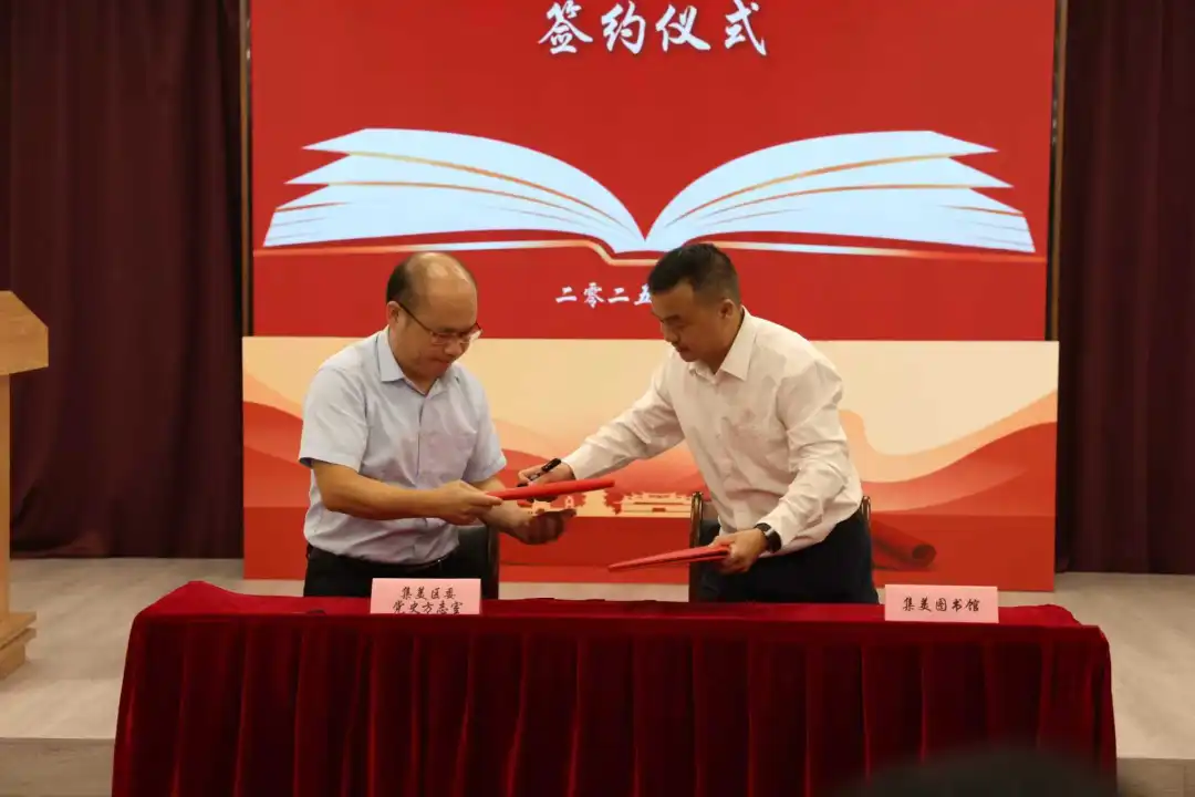 揭牌仪式后,中共集美区委党史和地方志研究室和集美图书馆现场签订了《联合建立“集美方志驿站”合作协议》。今后,双方将继续收集整理各地的志书及部分有地域特色的方志文献,扎实开展好文献信息服务,力争将方志驿站打造成为收藏方志典籍、传播方志文化的坚实阵地。