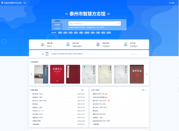 2025年7月31日,江苏最后42家县级智慧方志馆悉数上线,标志着全省110家省、市、县(市、区)三级智慧方志馆(含苏州工业园区)全部完成上线任务,实现三级智慧方志馆全覆盖。